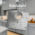 جميع المكونات مصنوعة من الفولاذ المقاوم للصدأ عالي الجودة. قوي للغاية، مقاوم للصدأ والتآكل لسنوات طويلة من الاستخدام. متوافق مع جميع مفصلات الخزائن القياسية والمفصلات ذات الإغلاق الناعم.