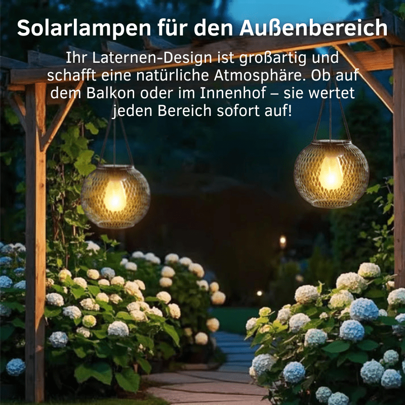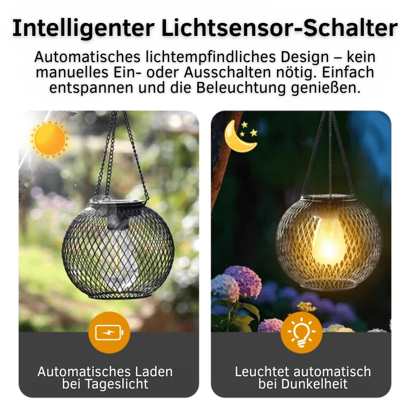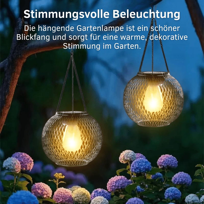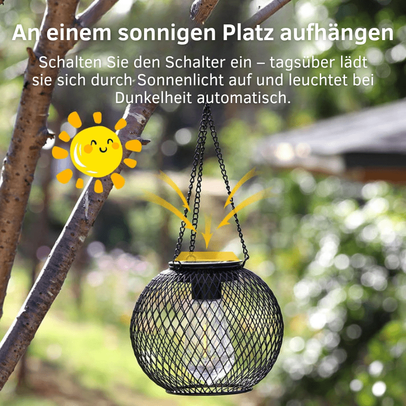 استمتع بإضاءة ساحرة تشبه اليراعات في حديقتك مع LumaGlow™ – المصباح الشمسي المعلّق الذي يشحن نفسه نهارًا ويضيء تلقائيًا عند حلول المساء. لا أسلاك، لا تكاليف كهرباء – فقط أجواء ساحرة!